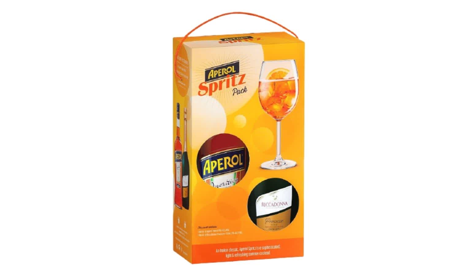 Give someone the ingredients to make their own Aperol Spritz with this gift pack that comes with an Aperol bottle and Riccadonna Prosecco bottle.