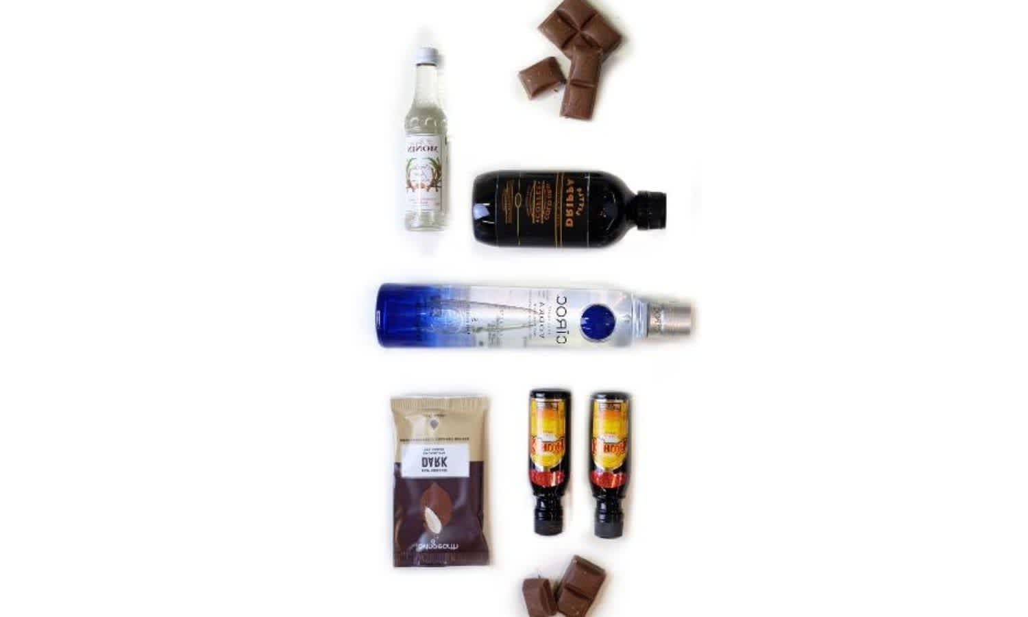 This kit comes with everything you need to create a delicious espresso martini, including Ciroc vodka, Kahlua coffee liqueur, premium coffee liqueur and grated dark chocolate to top it with.