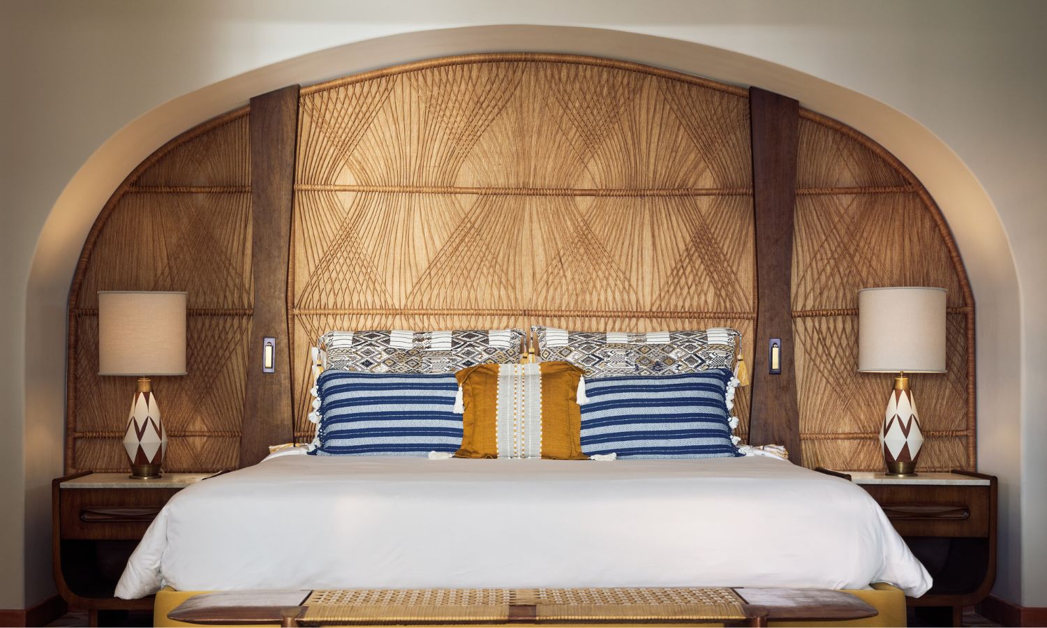 Bernerd and her team hand-selected local artists to work with on the property’s interiors. This includes the likes of Jose Noe Suro, who crafted over 700,000 hand-painted Jalisco tiles for the guestrooms, Henequen Textiles, who created rugs woven from a hemp-like material sourced from the agave plant and artist Eduardo Ricon, who worked on shadow boxes to display native botanicals.
