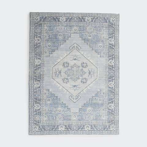 Sheared Wool Blend Print Rug, Blue, Medium, $69