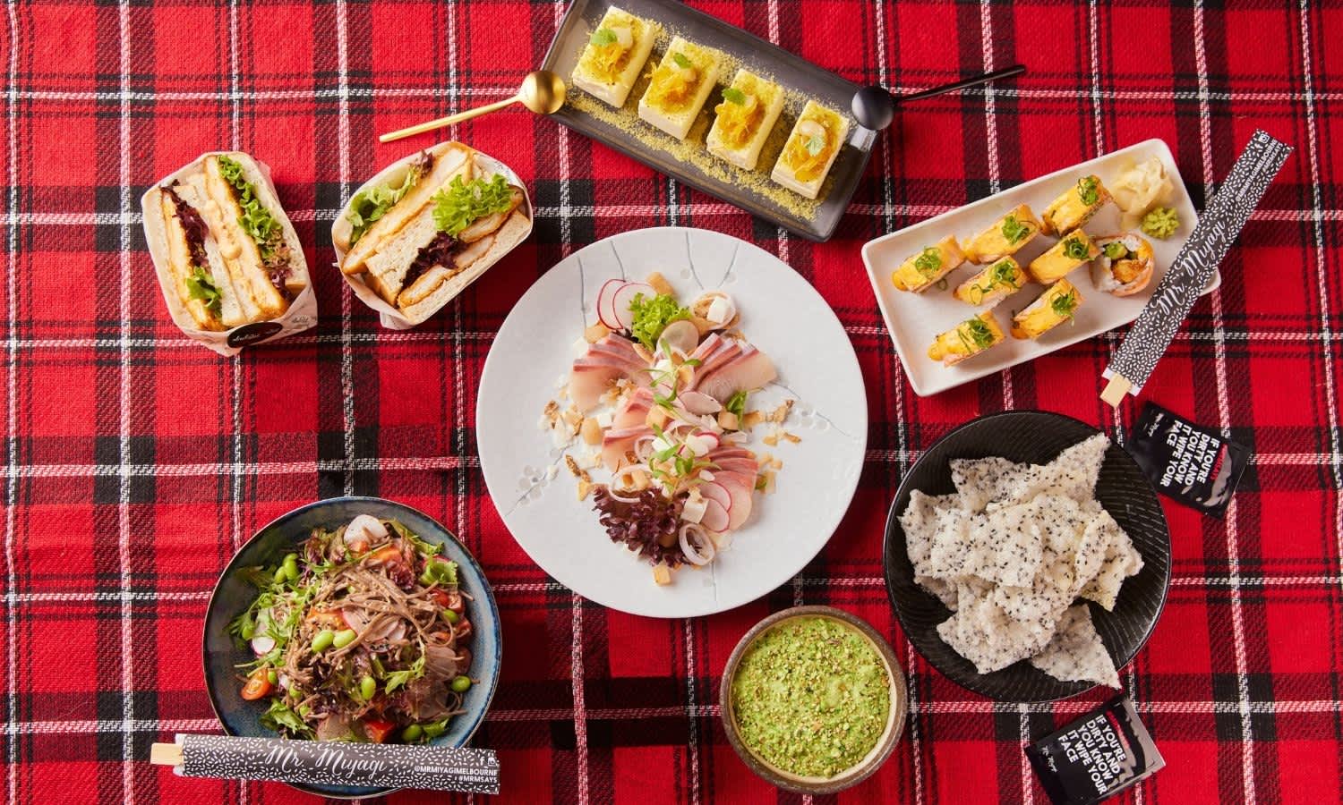 Each week, Mr. Miyagi will pick two locations in Melbourne and set up a temporary station where pre-ordered picnics can be collected — all you’ve got to do is keep your eye out for the Miyagi flag! No need to jump in a car or wait for a delivery at home, just head to your location and the team will take care of you.