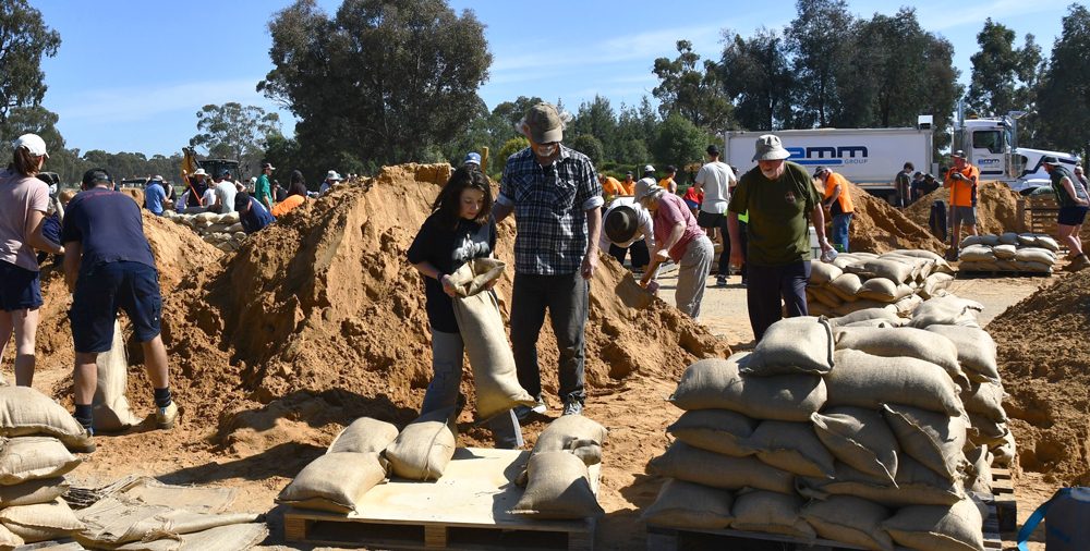 Huge community effort in #Moama to prepare for expected major flooding. Residents reporting they don’t even know the people turning up to sandbag homes, they are just chipping in to help. @abcnews #NSWFloods pic.twitter.com/gR8w6PaEWY