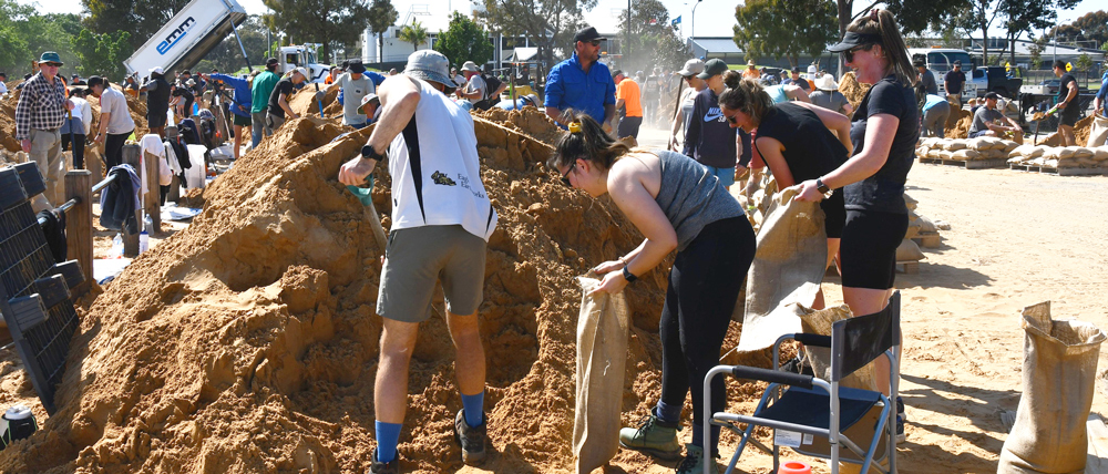 Lou Conway, Moama resident and Echuca Moama Photography Club member shared these photos of community members filling sandbags near the local playing fields.