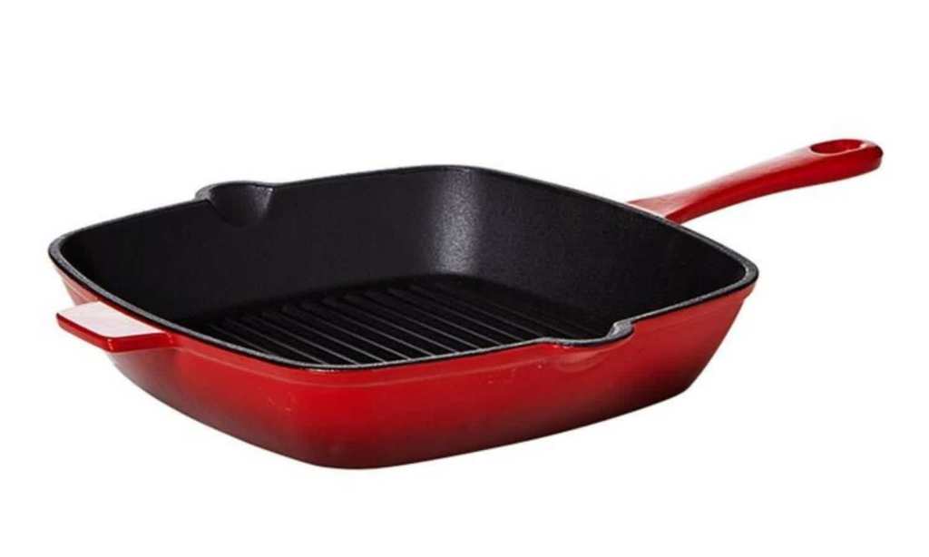 So, what’s on offer? Well, the range features roughly 35 items, including skillets, casserole dishes, braisers, roasters and fry pans that come in various sizes and colours like gradient blue, a beautiful lilac and a bold red. It starts at $12.95 and goes up to about $79.97 (sale prices).