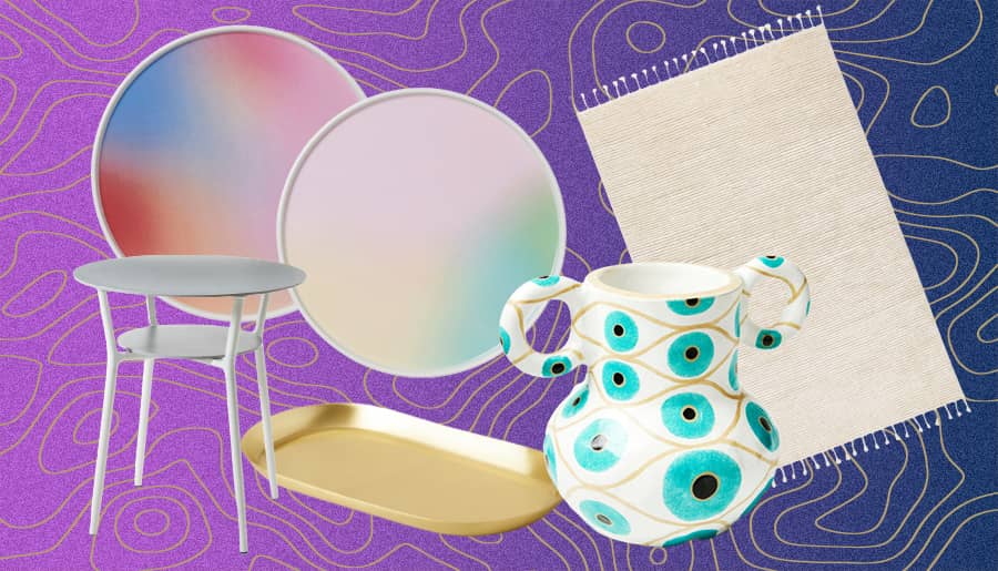 Y2K style has reached homewares, with the ‘yin yang’ design on this mirror set. Both are made with teak wood, with a black semi-gloss finish. Buy them as a set or individually.