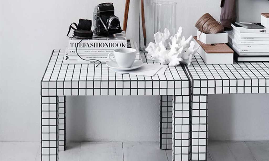 With a few sheets of basic tiling and some contrast grout, you can create a seriously cool and durable table for both indoors and outdoors.