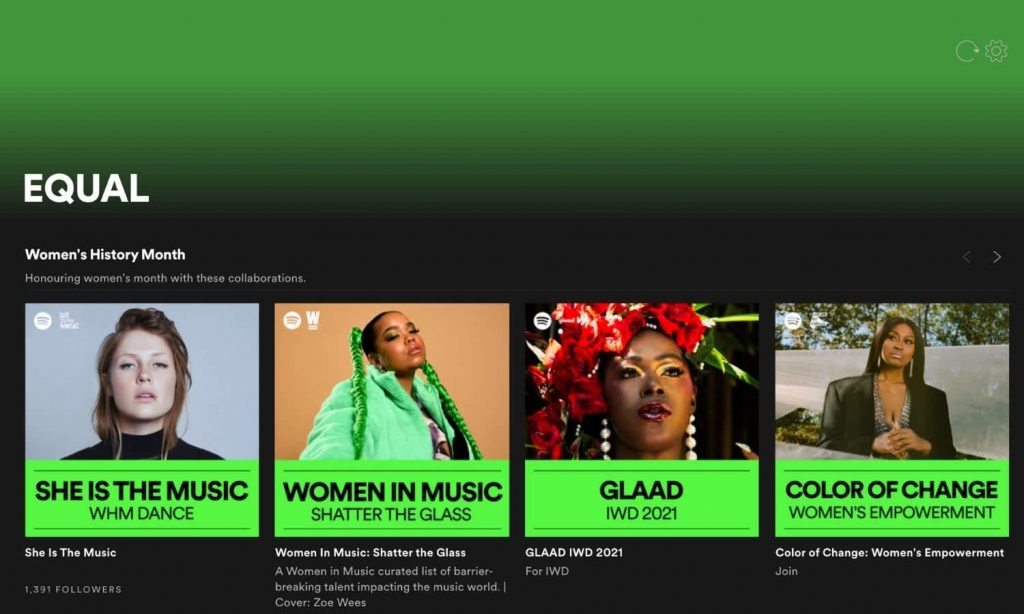 The EQUAL campaign features several different facets including the EQUAL Hub — a dedicated space on-platform to highlight women creators and allow fans to seamlessly stream their music and podcasts. It will extend beyond the month of March and is programmed globally.