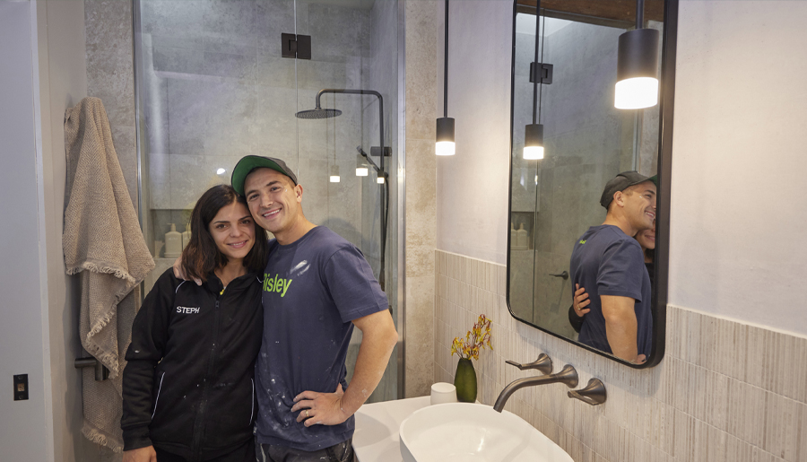 Yet, Steph and Gian had to push on. Even though they couldn’t use power tools, this couple needed to finish constructing their bathroom.