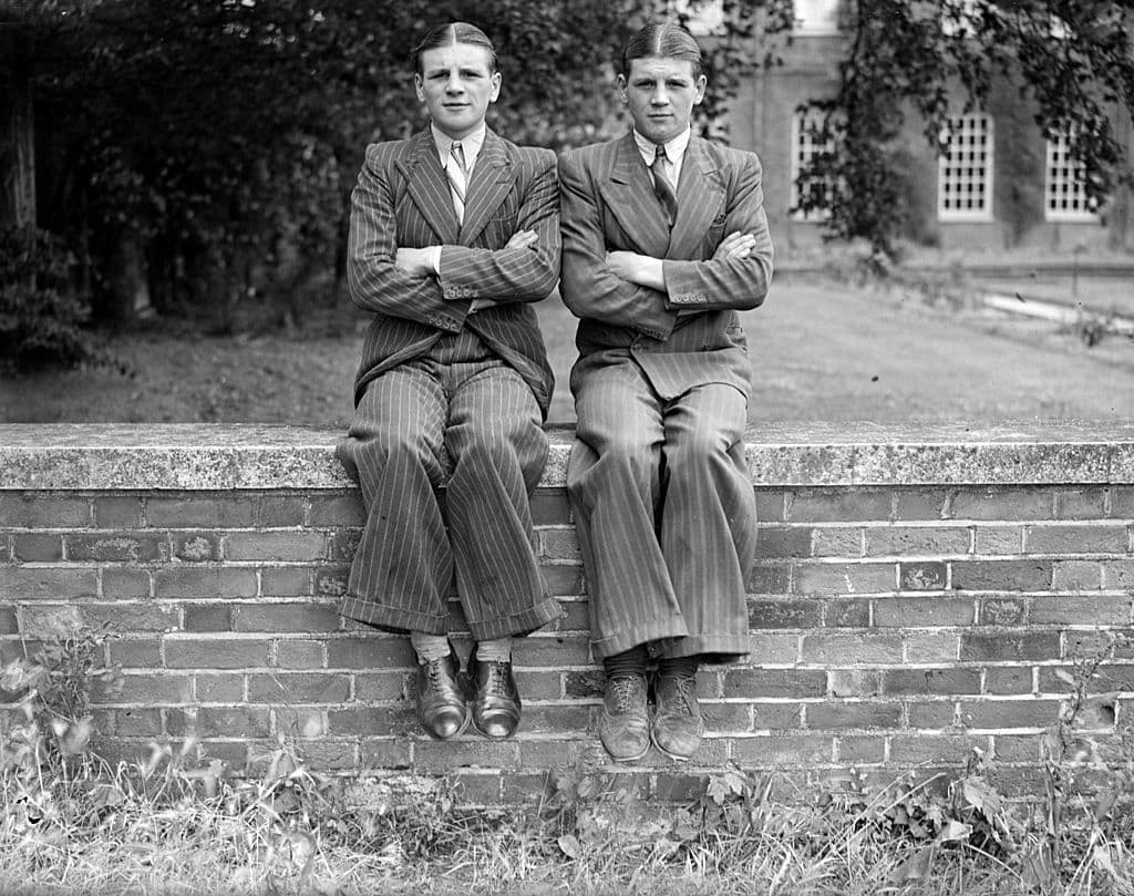 The depression in the 1930s meant suits went back to utilitarian styles. Worn with trousers ultra high, it was also the period in which the trouser pleat became popular, something we still have today.